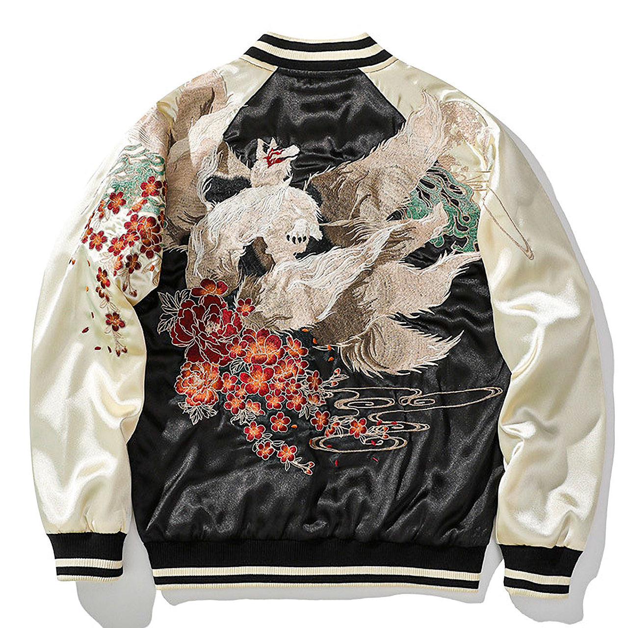 Jedes Stück zeigt detaillierte Stickereien mit schimmernden Satintönen: Drachen, Tiger, Phönixe oder Kitsune. Diese alten Symbole für Stärke und Schutz werden mit außergewöhnlicher Präzision nach der traditionellen Sukajan-Technik gefertigt.